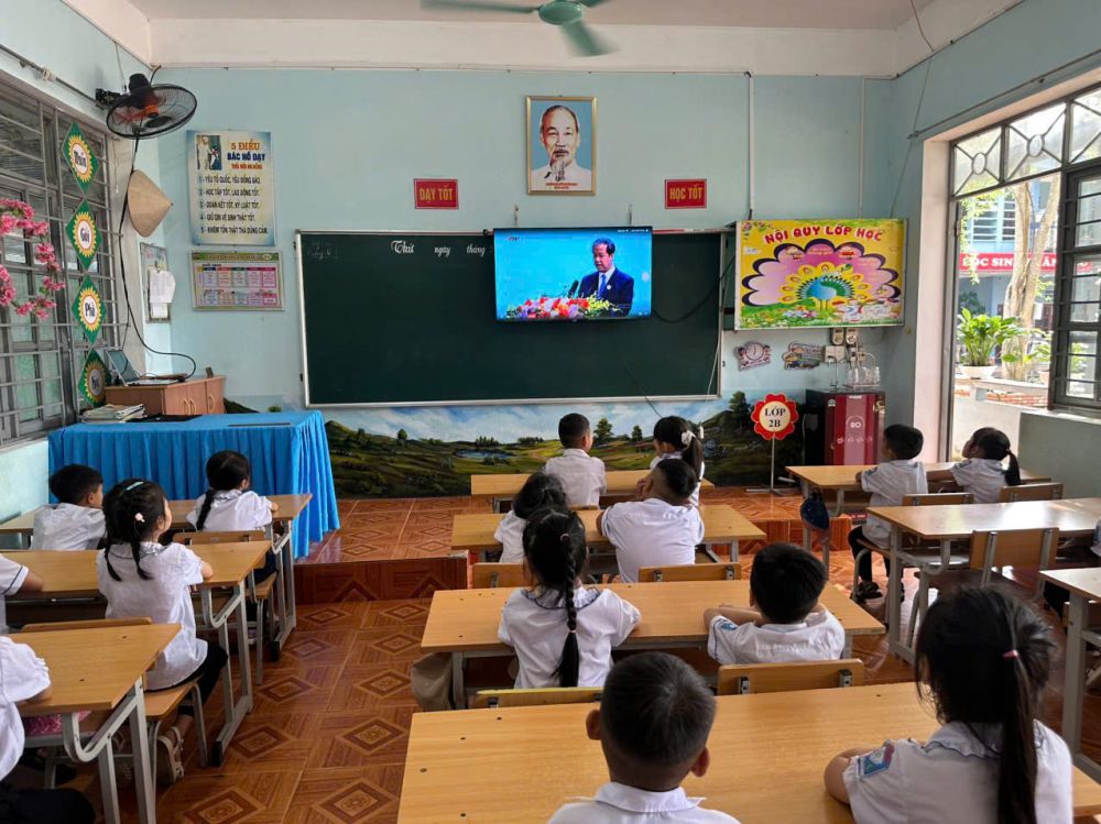 ✍️Cùng với đó nhà trường cùng các quý vị đại biểu đã cùng theo dõi và dự trực tuyến Chương trình Lễ kỉ niệm 80 năm thành lập Bộ quốc gia Giáo dục và Khai giảng năm học 2025-2026 do Bộ giáo dục và đào tạo tổ chức.