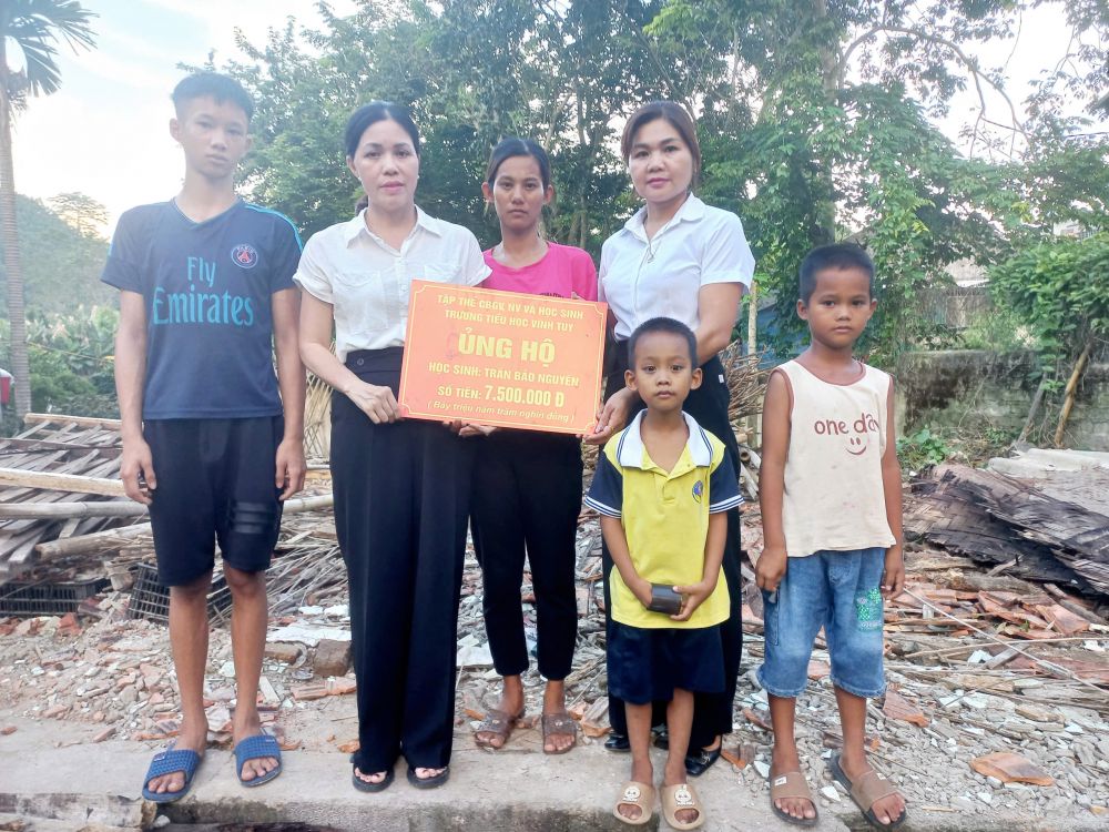 TRƯỜNG TH VĨNH TUY TRAO QUÀ CHO GIA ĐÌNH HỌC SINH BỊ THIÊN TAI